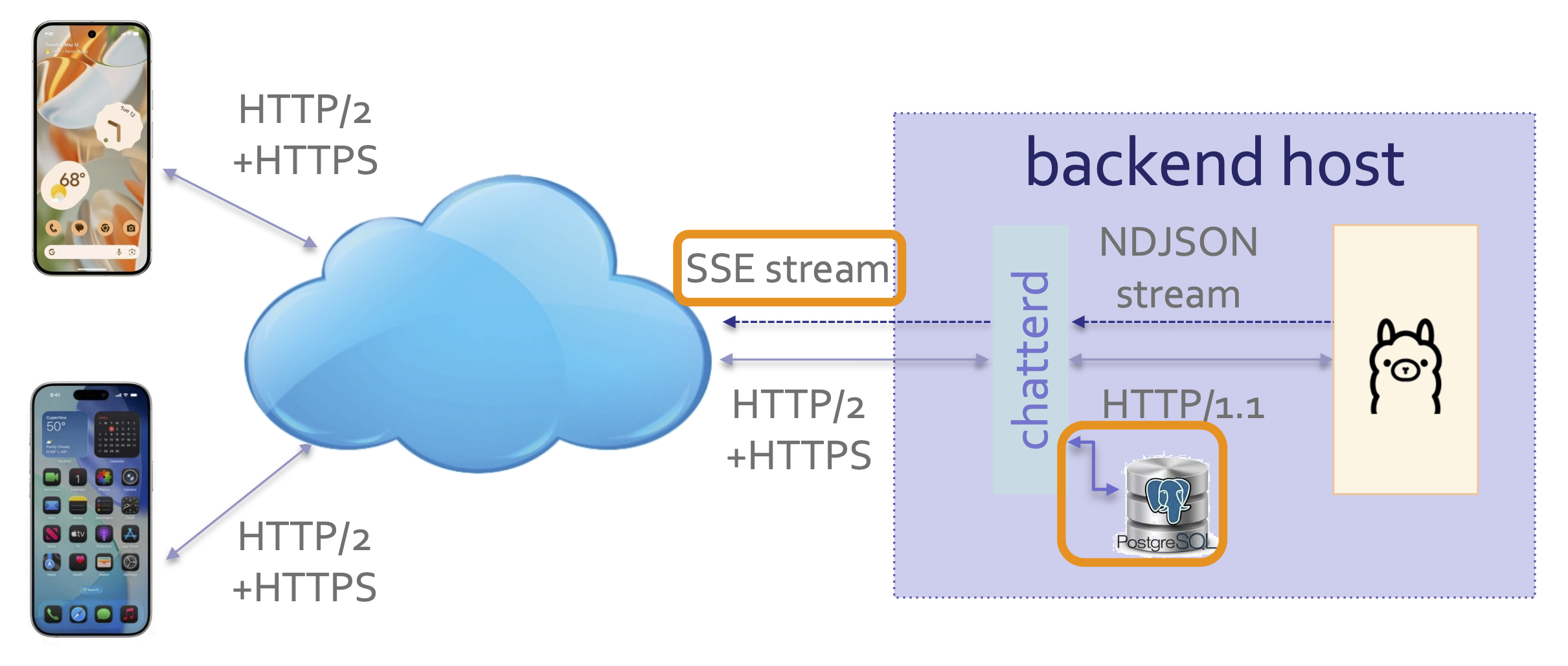 llmchat: uses HTTP POST to post user’s prompt for Ollama’schatAPI as a JSON Object and to receive Ollama’s response as an HTTP SSE stream.