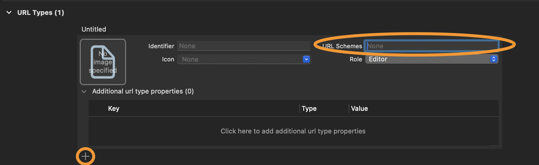 Infotab, scroll down and expandURL Types, then click the+button in theURL Typessection and paste the content of your clipboard into theURL Schemesfield, leaving all of the other fields empty/unchanged (screenshot). - On Xcode navigator/left pane, right-click the